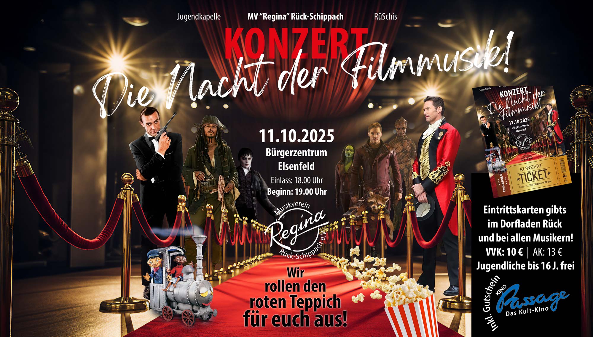 Am Samstag, 11.10.2025, präsentieren wir Ihnen ab 19.00 Uhr „Die Nacht der Filmmusik“ im Bürgerzentrum Elsenfeld!