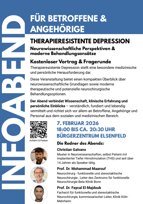 Diese Veranstaltung bietet einen kompakten Überblick über neurowissenschaftliche Grundlagen sowie moderne therapeutische und potenzielle neurochirurgische Behandlungsoptionen.