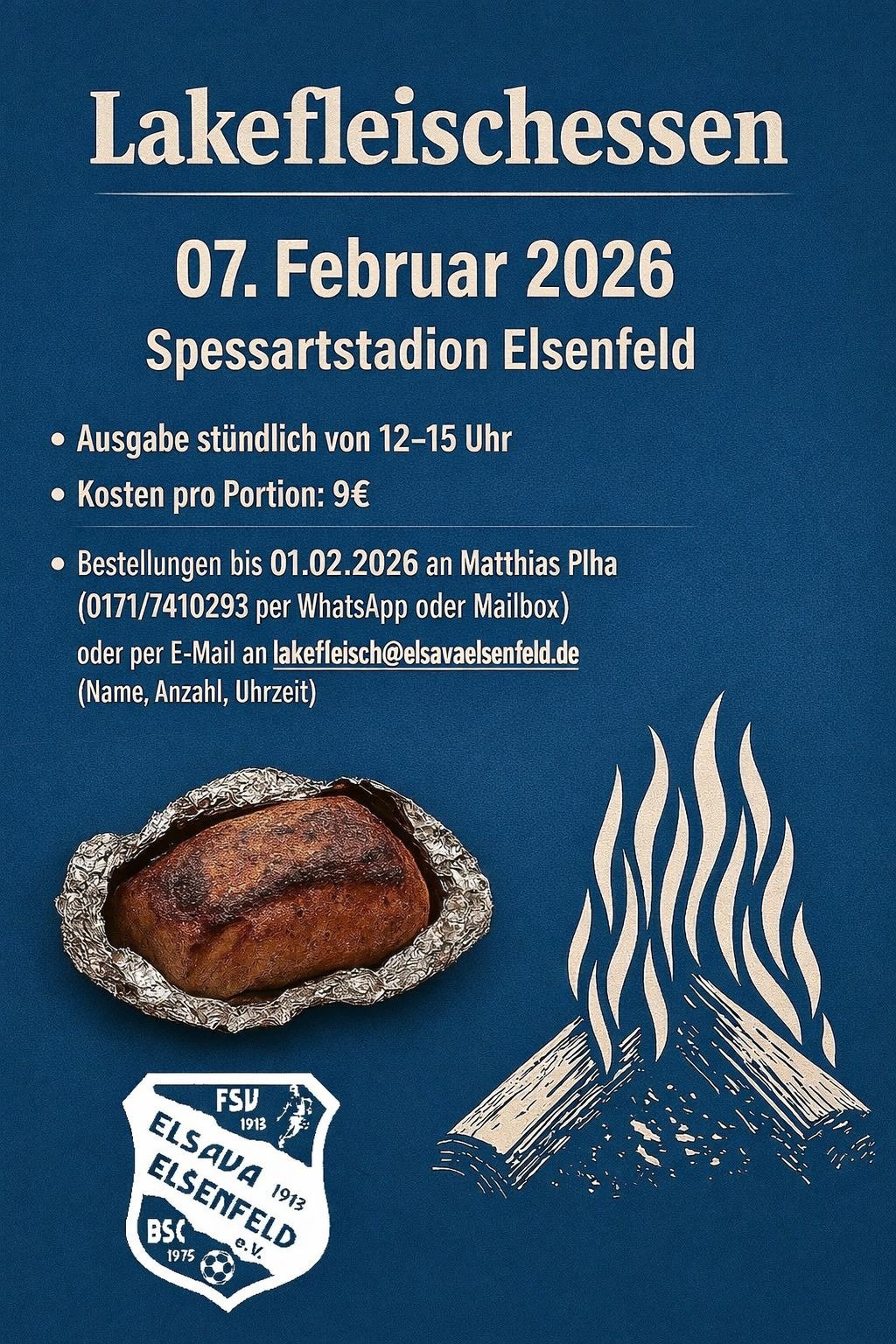 Das Lakefleischessen 2026 findet am 07.02.2026 im Spessartstadion statt.