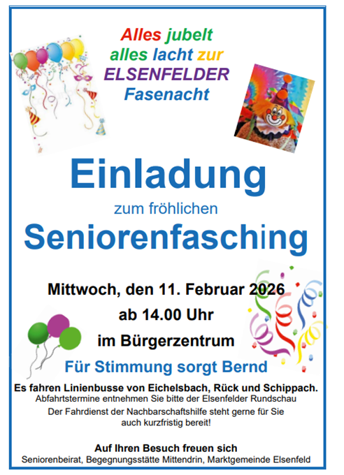 Einladung zum Seniorenfasching im Bürgerzentrum: