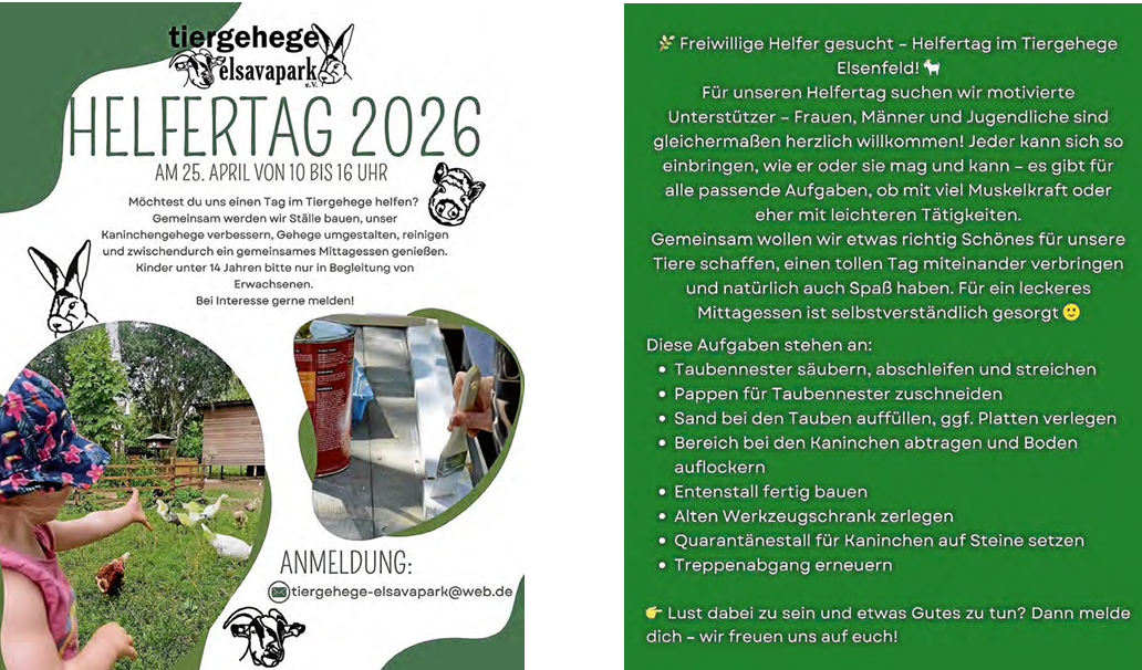 Freiwillige Helfer gesucht - Helfertag im Tiergehege Elsenfeld!